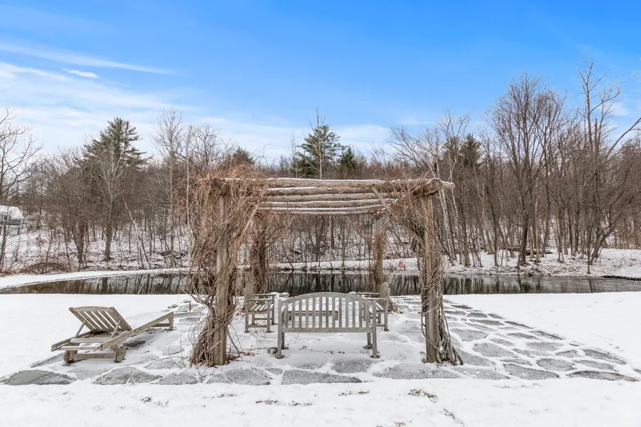 Situated in Southern Vermont's Mettowee Valley; minutes from Dorset/Manchester and close proximity to Albany, Saratoga, and Saugerties, you can't help but recognize the magical, calm feeling as you approach Sykes Hollow Farm. Upon turning up the tree lined drive, passing three grass paddocks, large fields with Run-In Sheds, Derby Field and a competition sized outdoor Ring (100 x 200) the charming reimagined (2011) farmhouse awaits your arrival. Consisting of four bedrooms and three baths, and a wonderful open country kitchen where there is room for guests to help with dinner preparations before adjourning to the wood beamed, candle lit dining room. After dinner you can curl up with a good book or board game in front of a roaring fire in the cozy living room. This home also enjoys a running brook, swimming and skating pond, seven stall show barn and 70 x 144 indoor ring. Add a two-bedroom guest cottage for family or guests plus a barn with a studio/groom apartment as well as space for yoga, dance or exercise in loft area. This 33-acre gem awaits the buyer who is looking to embrace all a Southern Vermont lifestyle has to offer, including golf, hiking, snow shoeing, skiing and the opportunity to make lifelong friends and memories. All measurements approximate.