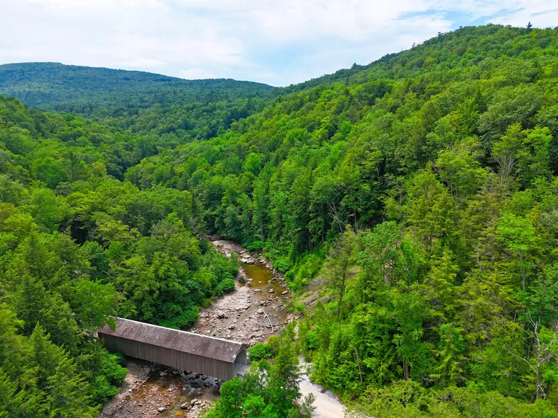 Underneath the bridge runs the winding Cold River, which directly fronts on the property's eastern boundary. Across the bank is Shrewsbury's popular Warren Swimming Hole, which is enjoyed by locals all Summer. On the far side of the covered bridge is a small parking area and a short trail that leads to the picnic area and wading pools.