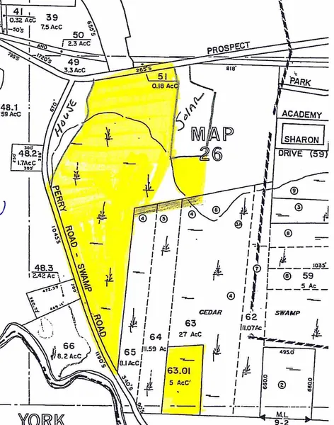This parcel was just broke off from the farmhouse/out buildings and 2.55 acres~map attached is a rough diagram of the lot(no survey done) potential house side on the Prospect road side~no flood zone in this area but back land is wet and is located in the flood zone~restrictions on building out buildings in the field too close to the fenced in solar area to block the sun~right of way through solar property to get to some of the property out behind the solar site~road frontage on Swamp Road and Prospect~