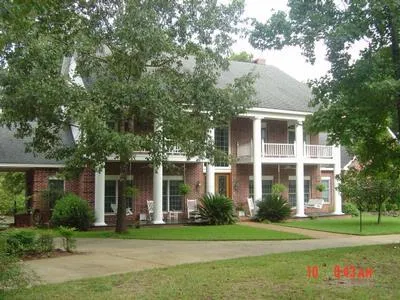 A showcase home reflecting the classic taste and subtle sophistication of the most discriminating homeowner greets your guests at the end of a private, tree-lined lane. As you pass through the entrance gate, you will view sweeping lawns, towering trees and a picturesque pond as the paved drive winds through gently rolling hills. Your first impression will be soaring columns as this Southern Colonial home with a handsome brick exterior and more than 6,000 square feet of living area comes into view. The sweeping pillared porch welcomes you to comfortable living and your own world of private elegance.