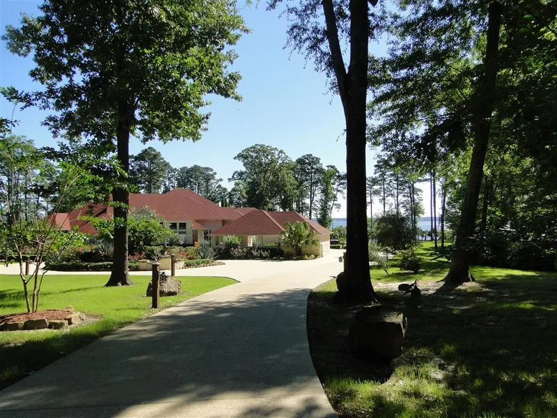 The scenic and winding drive through the gated entrance of this stunning 12+ acre estate opens to sweeping views of prime waterfront and a Toledo Bend point with over 1700 feet of shoreline.