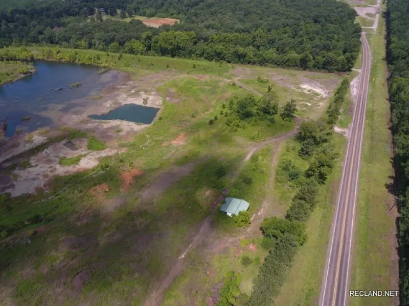 This property was once a working rock/dirt pit. The scale house and platform are still in place. There is a beautiful lake on the property that could be developed to have a nice house on the hill overlooking it. Property has excellent frontage on Hwy 21 as well as a Flat Road on the south end.