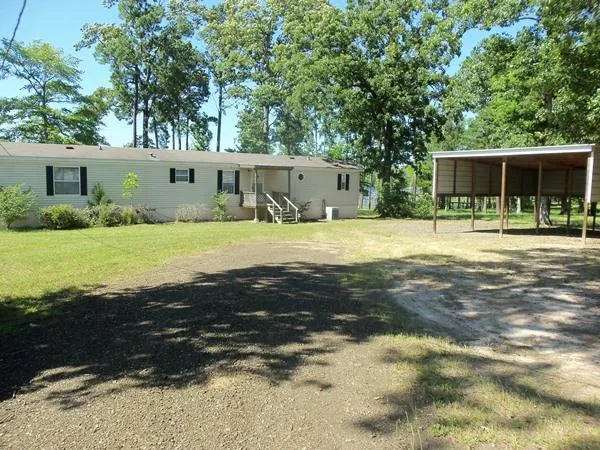 Very fine 16x80 mfg. home with 3 bedrooms, 2 baths and 2 car carport on an acre (m/l) of waterfront land. Home is immaculate inside and out. Comes furnished, including washer/dryer and dishwasher. Has nice covered porch on water side and bunk house with bunk beds. Long pier, gentle slope, gated boat ramp just a few houses down. Land is flat. Seller says spectacular sunsets and fabulous fishing. Located in Sandy Creek Estates in middle south part of lake. Near eating, groceries and gas. Call today.