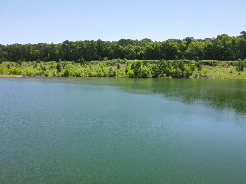 The 10+ Acre lake on the property is stunning. Most of the lake is 7-10ft deep, with several portions being as deep as 25ft. Visibility is over 5ft, creating beautiful swimming areas. Large mouth bass are routinely caught from kayak on this lake. One walk around the perimeter easily shows the health of the fish population, with many bass visible from the bank and numerous fish topping the water.
