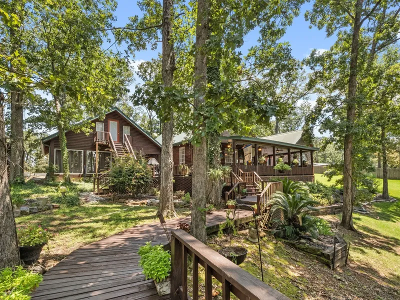 Nestled along the shores of expansive waters with stunning views and breathtaking sunsets, this remarkable property offers a unique retreat experience. This beautiful log and brick home boasts two guest houses and a bunk house, providing ample space to comfortably sleep 20 guests, with potential for more. Spanning approximately 4,204 square feet of heated and cooled living space, the main home features 3 bedrooms and 3.5 bathrooms, including a cozy wood-burning fireplace. Situated on 1.92 fenced and gated acres, this estate is designed for outdoor living with a spacious 16x20 covered porch complete with an outdoor kitchen. The kitchen is outfitted with granite countertops, two Green Eggs in different sizes, sink, and plenty of prep space. Enjoy the outdoors surrounded by luxurious Breezesta composite furniture. The property is well-equipped with a 22KW generator, ensuring 85% power to th...
