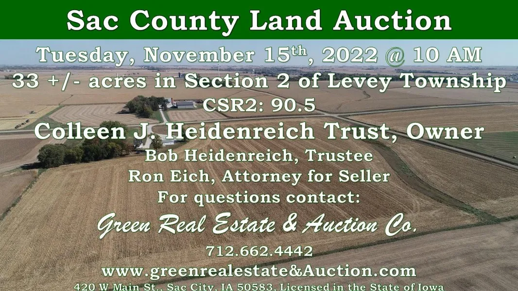 Trustee: Bob Heidenreich, Ft. Dodge, IA. Attorney for Seller: Ron Eich, Wall Lake, IA