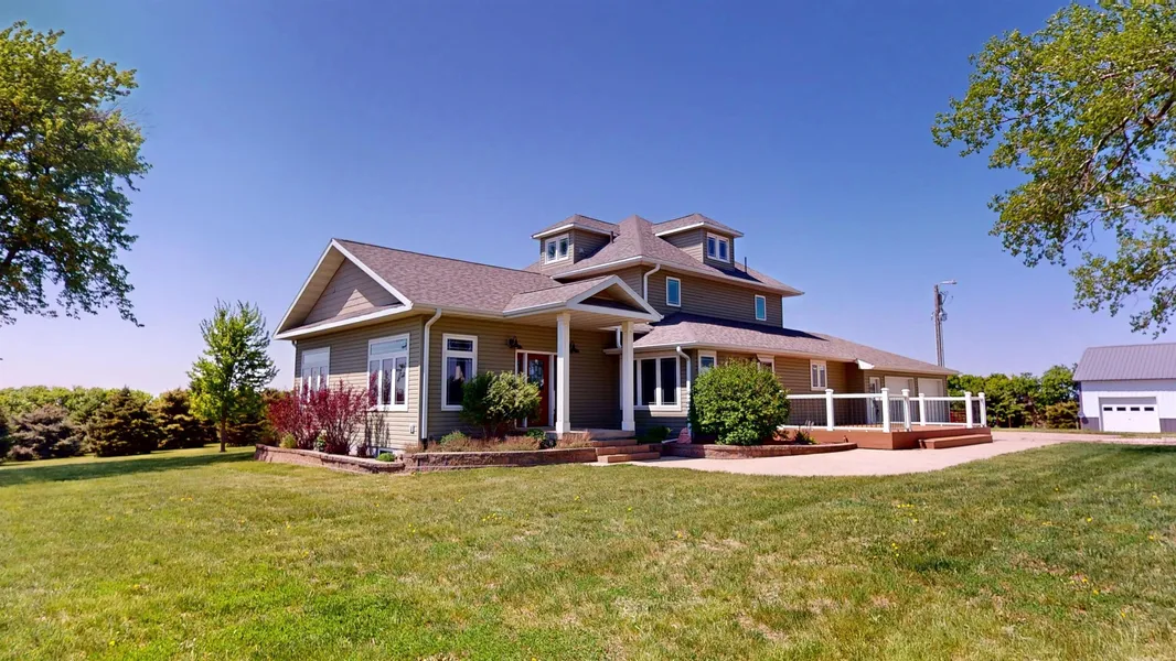 This is a beautiful acreage located in rural Sac county Iowa. The home is majestic. It offers 5 bedrooms and 3.5 bathrooms. It has a large kitchen, dining room and living room on the main floor. There is also a Master Suite with a full bath, office and laundry on the main. Upstairs houses three more bedrooms and a 3/4 bath. The basement has another bedroom, 3/4 bath and family room. The remainder of the basement is utility and storage. There is a composite deck on the east side and a cement patio on the west. The house is serviced by rural water and a well. The furnace is Geothermal with central air. There are three out buildings. One two stall horse barn, a storage shed with overhead doors. Also there is a large shop that measures 52`X 54` that is cemented out and is heated. As if that is not enough, there are two Aronia Berry plots. This acreage offers almost everything ...