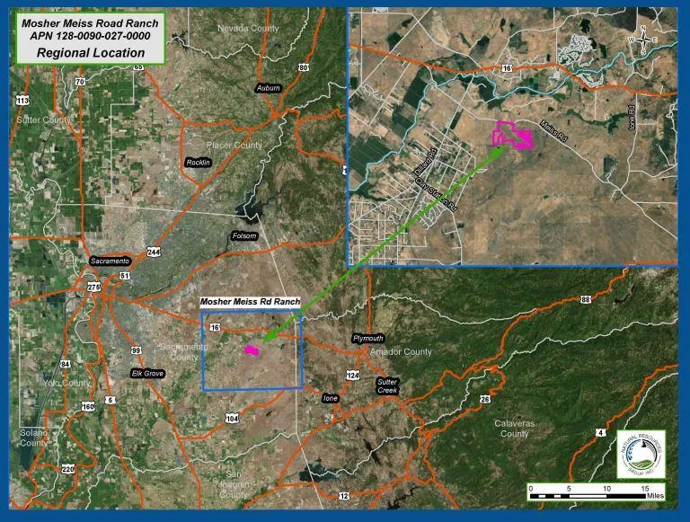 REDUCED PRICING! Rarely do parcels of this size come up for sale in Sacramento County! The Mosher Meiss Rd ranch is 548+/- acres of rolling hills and grasslands with beautiful home sites, spectacular views, privacy, seasonal water, and lots of trees. The property has potential to be split into 80 acre parcels. Approximately 200+/- acres are subject to an existing conservation easement for vernal pools. The remainder of the property may have conservation value as well. Current use is livestock grazing