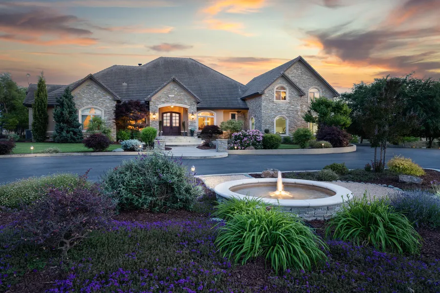 Entering the gates of this estate, you are greeted by a gorgeous tree lined drive, sprawling pastures, and meticulously manicured grounds. 3 homes, shop and storage building comprise this estate. The home exudes luxury, the finest of tile and granite, top of the line appliances and fixtures have been used. Oversized arched windows allow for an abundance of natural light. The formal living and dining flow to the family room with grand fireplace, and gourmet kitchen. Resort like yard boasts incredible outdoor kitchen, covered patio, sparking pool with in ground water features, hot tub, and massive outdoor fireplace. Run your business from home in the large bonus room located above the 3 car attached garage. Dream shop, with workspace, equipment storage with full apartment above. The estate is fenced and crossed fenced. Watch water fowl come and go from your private pond. This desirable location offers a serene life, yet less than 30 minutes into downtown Sacramento.