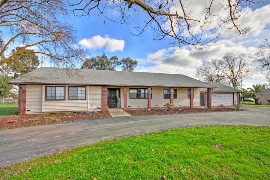 New Price! Motivated Seller! Close-In Country Living Don't miss your opportunity to live on 5 acres in Galt (east side). Less than 3 miles from Highway 99, this comfortable country home is close to shopping, restaurants and schools. The 3 bedroom/2.5 bathroom home is spacious and has been recently updated with flooring throughout, interior paint, lighting and backyard patios. It also has a large indoor laundry room/mud room. A huge metal building (approximately 32'x36') with concrete floor, 3 car garage and workshop/office means there is lots of room for toys, RV's or extra vehicle parking.Property is completely fenced and has a blacktopped circular driveway with gates.