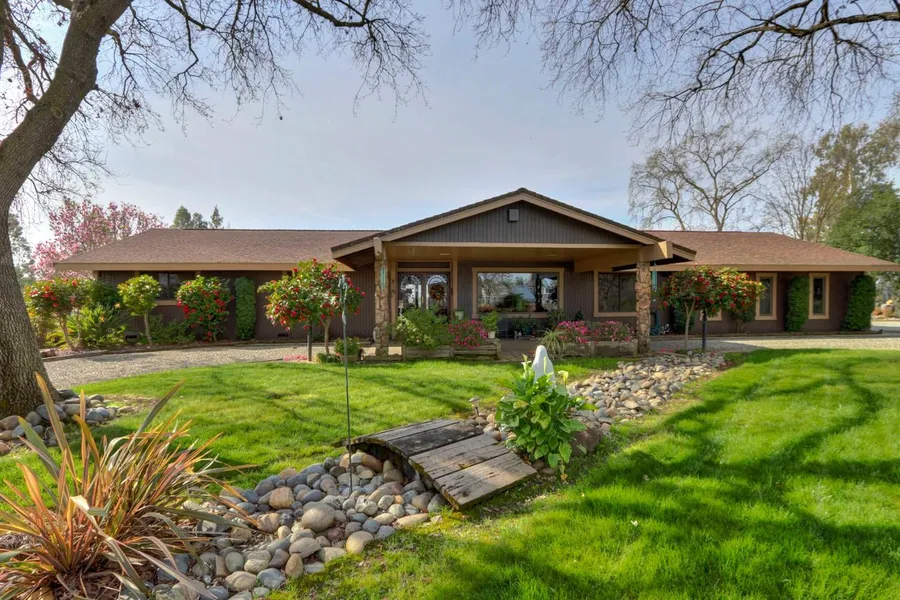 This beautiful 10 acre property includes a main home with a guest house. Situated behind the scenic pond is a beautiful one story ranchette. This home is built to last. Ithas 3 bedrooms, 2 bathrooms and a magnificent updated kitchen with a huge walk-in pantry.The kitchen, family room and master bedroom all adorned with Anderson sliding doors thatopen to beautiful country views. The guest house is perfectly situated with a 2 car garage, bedroom,full bath, kitchen, dining and family room and includes plenty of storage. Both homes overlook the tennis court, pastures, pool and have stunning views.There are 2 out buildings. One is a large two story shop with a full bath that housed a family business the other is a barn with animal stalls and hay/equipment storage. You will also find the most adorable chicken coop next to the riding arena. If you are thinking of a tranquil more simplified lifestyle in the country you will not want to miss this property!