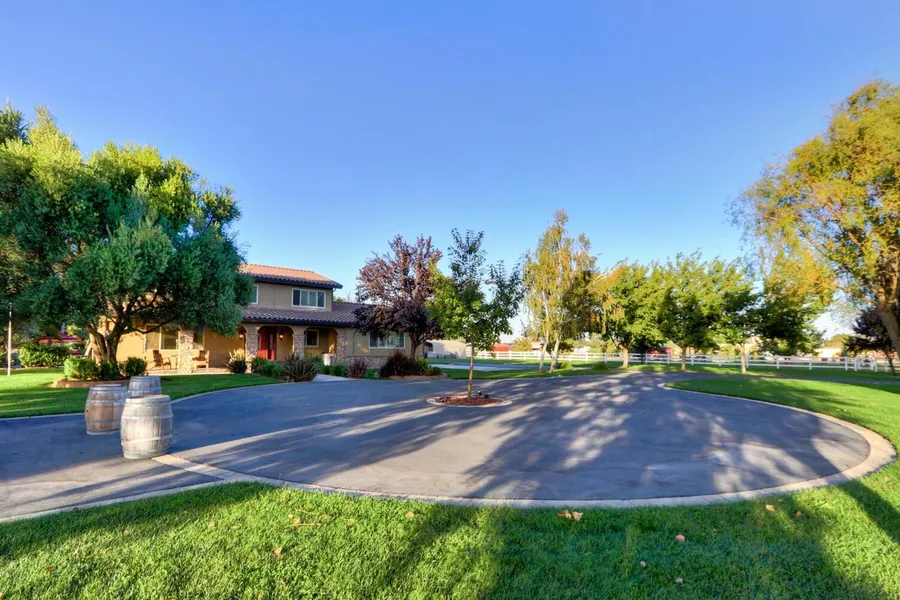 Gorgeous country estate on desirable Colony Hill Lane. This is a one-of-a-kind property that has it all! 4bd 3 bath, exquisitely remodeled in 2007 from top to bottom. Gourmet kitchen with travertine floors, granite counters and top of the line appliances. Downstairs bedroom and bathroom. Light and bright. Private back yard with solar heated pool, built-in bbq, fire pit, hot tub, it's perfect for entertaining and is beautifully landscaped. The front features a gated entry with a long tree lined driveway, circular driveway and a covered front porch. The side has raised garden beds and fruit trees. In the back there is a 3-car detached garage, a car port (for boat or toys), a barn, hay storage, wash rack and is fenced for horses. See list of upgrades.