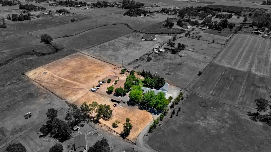 Beautiful country ranch style home nestled on 5 acres in the heart of Wilton with private drive and gated entry. When you walk into the home the first thing you will see is the open floor plan. The classic step-down great room offers vaulted ceilings with a beautiful stone fireplace that is open to the updated kitchen which includes recessed lighting, granite countertops, backsplash, stainless steel appliances, custom cabinets,and granite island. Large dining area, huge bonus room and bedroom w/attached bathroom and walk-in closet, updated bathrooms with granite counters and tile floors. Master suite has vaulted ceilings w/exterior access, master bath has granite counters with dual sinks, custom new tile shower with soaking tub, and large walk-in closet. Extra-large laundry room with lots of cabinets and built-in wine cooler. This home offers lots of privacy with 3 horse stalls w/fenced pastures, fruit trees, beautiful rear yard, multiple patios and oversized 4 car detached garage