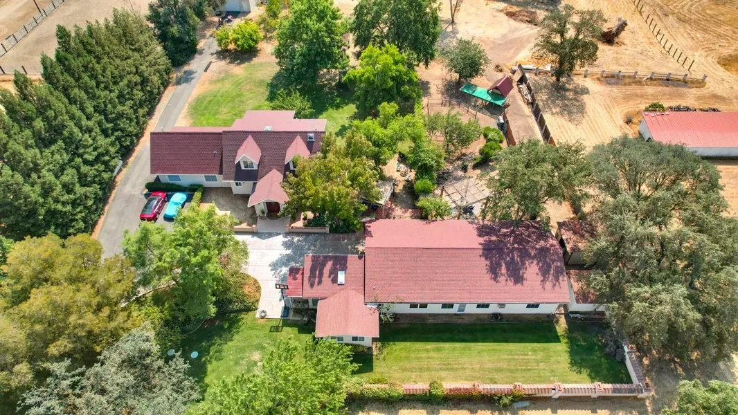 One of a kind Wilton Beauty with paved gated entry into a sprawling estate which features a park like setting. Main home is 2245 sq. ft w/ 2 master suites, formal dining area w/wood floors, granite kitchen counters, black appliances,custom cabinets w/dining bar. Master bathrooms are updated w/granite and stone, dual sinks and multiple shower heads, upstairs laundry, closet w/organizer, newer windows and roof,attic has open storage, balcony w/stairs, covered patio w/ceiling fans, guest house is 350 sq. ft w/loft, kitchenette, full bath and covered patio. Detached garage is approx. 1800 sq. ft. epoxy floors, office, bathroom, gym area, chicken coop, sheds, shop, private patios all situated on 4.6+ acres.