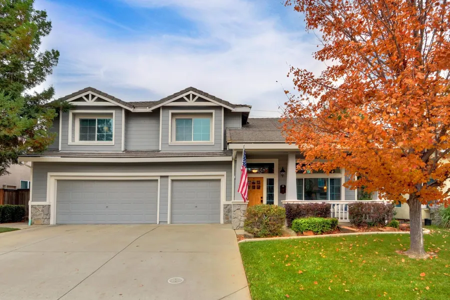 Fabulous home with an incredible yard in the wonderful sought after Lakeside Community! Relax on the covered porch and enjoy the neighborhood. Beautiful hard wood door leads you inside to the living room full of bright natural light and two steps up to the large dining room. Gourmet kitchen features a center island, bright skylight, pantry closet and lots of counter and cabinet space. Kitchen updates include a farmhouse sink, quartz counter tops, tile backsplash, stainless steel appliances including a 5-burner cooktop, double oven/microwave, dishwasher, & hood. Kitchen overlooks the large family room with a cozy brick fireplace with insert, built in bookcases, plantation shutters, and French doors leading to the backyard. Huge primary suite features bathroom with double sinks, soaking tub, separate shower, and large walk-in closet. The backyard is your own private oasis. Lounge on the patio or swim in the built-in pool with spa and water fall and enjoy the mature trees and landscaping.