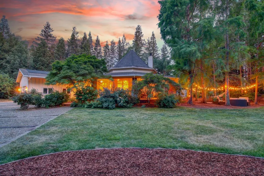Luxury estate on a private airstrip. With so much to offer starting with a custom home with amazing finishes, a wraparound porch and a solar heated pool. For the pilots, the luxury of fly-in, fly-out access is offered by its location on the Alta Mesa Airpark runway and private airplane hangar. The hangar/shop is approx. 51'x44' with a 10'x44' loft, 2 offices, bath, HVAC and abundant storage. Imagine the convenience of being able to jump into your plane and fly off on a whim or commute to work. For the animal lover, 5 acres with a barn equipped with electricity, wash rack, tack room, stalls, chicken coop and arena. For the entertainer, unique wooded property, professionally landscaped. Host with ease with multiple gathering areas and extreme privacy. Enter this stunning property through a gated and circle driveway. There is a 2nd gated + paved driveway leading to the hangar, large veggie garden, orchard and barn. Thirty min from Sac. This is truly a resort-like estate.