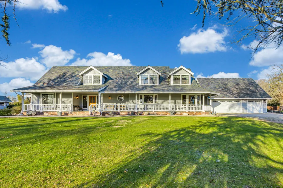 A desirable French country-style home on 4.8+/- acres exudes charm and practicality with its covered front porch and level useful land from corner to corner. Inside you’re greeted by a cathedral ceiling, views to the backyard, and a grand fireplace wall with raised hearth, perfect for cozy nights in. The large kitchen has plenty of counter space and a walk-in pantry perfect for all your cooking essentials. Next to the kitchen is the game room with an arched brick pass-through counter allowing for easy access to food and drinks. The upstairs primary suite provides solace and a soaking tub with a view. Outside the main home is a detached garage turned retreat that is a great versatile space for work or play. Plenty of green grass and trees surrounds the home and the covered breezeway connecting the garage to the house adds convenience while enhancing the property’s character. An impressive feature you don’t see on every home is the durable real slate roof with benefits that will keep you happy for years to come! RV access makes it easy to store and access vehicles of any size. So much value and potential in one piece of property!