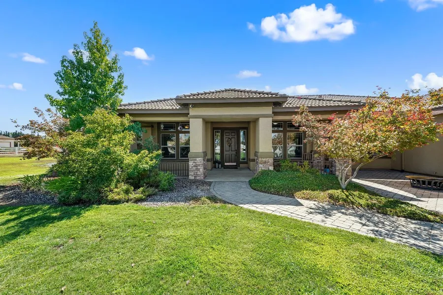 Welcome to this 4,400 sqft of luxurious living on 2.58 acres w/ 800-sqft casita. Step into the large formal dining room w/ 3 large picturesque windows w/ gas fireplace. The heart of this residence is the impressive Gourmet Kitchen, featuring dual Wolf ovens; one conventional, one steam w/ warming drawer and Wolf 6-burner stove-top w/ hood. Dual granite islands w/ soft-close cabinetry. Enjoy modern conveniences w/ a microwave drawer, full-size Sub-Zero refrigerator, separate beverage refrigerator, Scotsman ice maker, reverse osmosis at sink, and Instahot water. Water softening filtration system adds an extra touch of comfort & efficiency. Elegant LVP throughout and a grand gas fireplace in the family room for cozy evenings. Enjoy your private oasis, a 32,000-gal Tahoe blue pool w/ diving rocks and captivating water features. The back patio is plumbed for water and electrical connections, perfect for an outdoor BBQ. Equipped w/ a large gazebo and outdoor speakers. Additional features: separate owned solar system for both home and pool, surround sound in family room, LED lighting throughout, fully remodeled laundry room, dedicated workout room, media room, security system and Level 2 EV charger in garage.