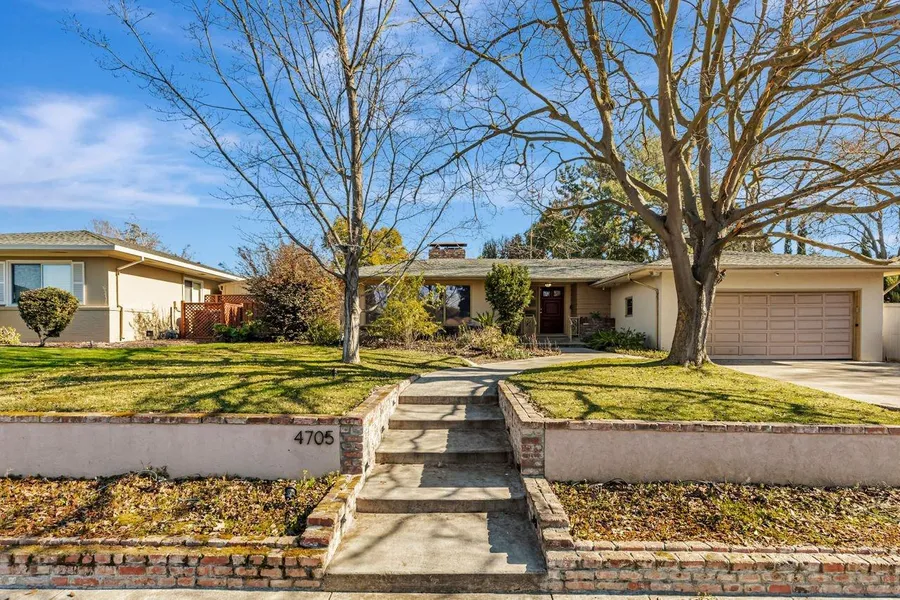 Top of the hill on South Land Park Drive with lots of potential both inside and out. Spacious rooms, LR has brick fireplace w/ insert. Gathering room has second fireplace and a wall of windows that open to a spacious backyard with older built-in pool. The hallway and bedrooms have hardwood floors. Other living and dining areas had carpeting which was removed, exposing plywood underneath. Three bedrooms and two baths. Original kitchen and bathrooms need updating. Separate pool house with one-half bath.