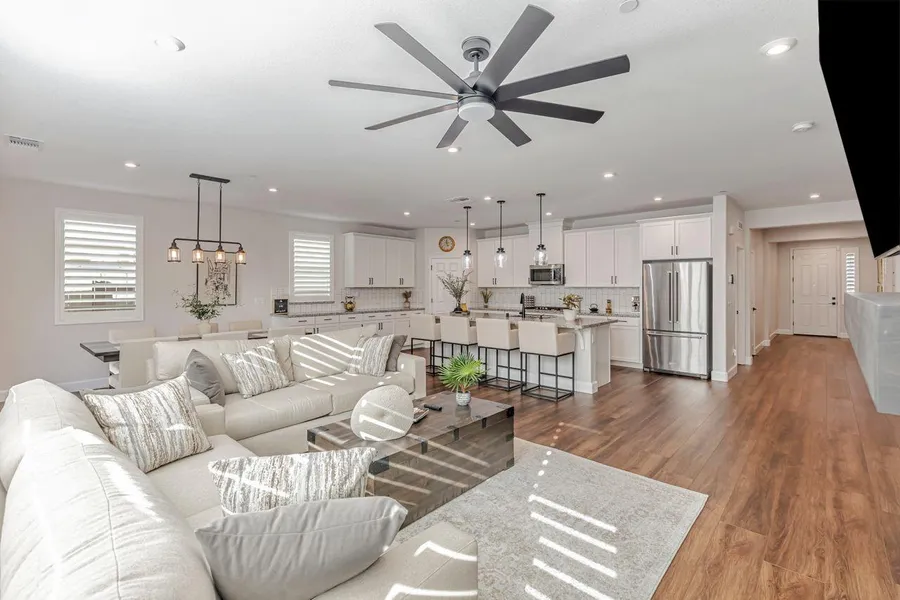 Beautifully SEMI-CUSTOM home with over $100,000 in upgrades!! This nearly new home, only two years old, is nestled at the end of a private cul-de-sac, offering peace & privacy. Located in a desirable gated community with 2 parks plus a dog park & walking trails, ideal for outdoor enthusiasts. The spacious kitchen is a true highlight, featuring sleek granite countertops, backsplash, walk-in pantry, premium appliances, upgraded cabinetry as well as additional cabinetry! The home features luxury vinyl flooring & shutters throughout, water softener & premium paint. The living area is anchored by a beautiful gas fireplace surrounded by floor to ceiling tile. Both bathrooms have full tile enclosures in shower & tub. The primary bedroom offers a spacious bathroom with a linen closet & large walk-in closet. Laundry room with sink & cabinets. Oversized tandem garage with epoxy flooring. Step outside to a drought-resistant private backyard, beautifully landscaped. A covered patio & ceiling fan provides a perfect spot to relax or entertain. Energy efficient home with double insulation & OWNED SOLAR. With modern finishes, a fantastic location, & a host of upgrades this home offers the perfect blend of comfort, convenience & style in a peaceful, private setting. Located within EGUSD!!!!