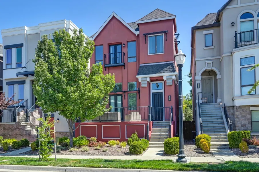 This ultra convenient and well appointed Brownstone is ready for your immediate occupancy. Located in easy proximity to all that Crocker Village has to offer, you'll find a plethora of shops, restaurants, and other services, as well as City Sports Club and a nearby light rail station at City College. Just a block or two away from delightful Curtis Park and also easy access to Land Park and the zoo. You will find nearby freeway access and other transportation options. Enjoy morning coffee on your elevated front patio or sunny back porch. This home is bathed in light and has a graceful and comfortable flow. An ample primary retreat is sure to make you feel pampered. A large two car garage has EV charger capability, and there's even room to store gear and toys. Come tour and savor the vibe at Crocker Village today!