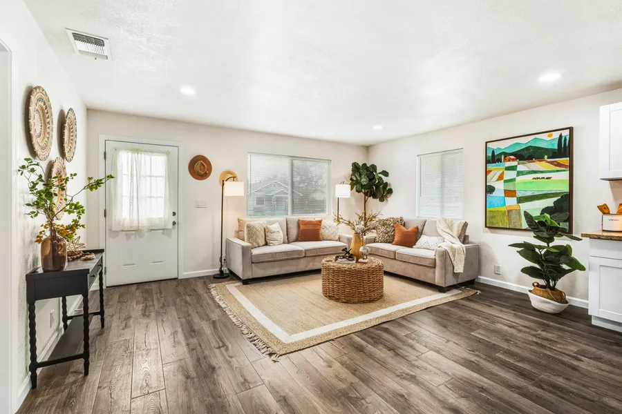 Cute as a button & beautifully updated, 3 bedroom 2 bathroom house boasts fresh kitchen w/ shaker cabinets & granite countertop. The great room has plenty of space for a living room & good-sized dining area . 2 renovated baths, indoor laundry, newer flooring & paint throughout. Double driveway fits 2 cars with ease! Nearby freeway access & just minutes from Christian Brothers HS, Sac City College, Land Park, the Sacramento Executive Airport, & Downtown. this bungalow has a BIG investment opportunity out back! A large, 2-story building can be easily transformed into ADU. Roll-up door is perfect for garage-style storage, while a regular door w/security screen is the perfect entry for renters. Space for multiple rooms upstairs for comfortable living quarters!