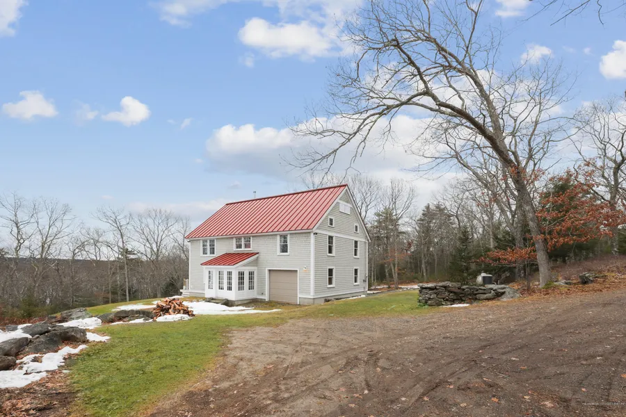 Understated two bedroom cottage on over-sized Kennebec Riverfront lot in Phippsburg. Potential to expand, or use as carriage house while building the family compound for which the setting is ideal. Fourteen acre kingdom lot has more than 1/4 mile (1470 ft) of waterfront. A bold, two-acre nubble forms protected cove with deep-water mooring and dock sites. The Kennebec River offers variety of marine access with calm water in all weather. Walking rights-of-way exist for benefit of association neighbors. The present house, built in 2003, is an energy efficient 2088 sq. foot timber frame structure. Vaulted ceilings and generous proportions belie its modest footprint. Quality craftsmanship and modern materials make it beautifully weather tight.
