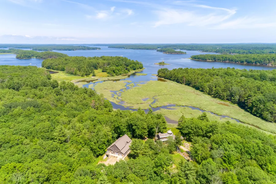 Beautiful contemporary 3 bedroom, 2.5 bath home; 2 bedroom guest house and a 5,000 s.f. studio all sited on an ever changing tidal marsh in a private, well landscaped setting. Studio has been a pottery business and can be again or converted to your own town approved business. The steel beam construction allows conversion into other uses. Unique, private offering plus a 3 car garage. All in excellent condition. The perfect hide-a-way yet close to downtown Bath/Brunswick.