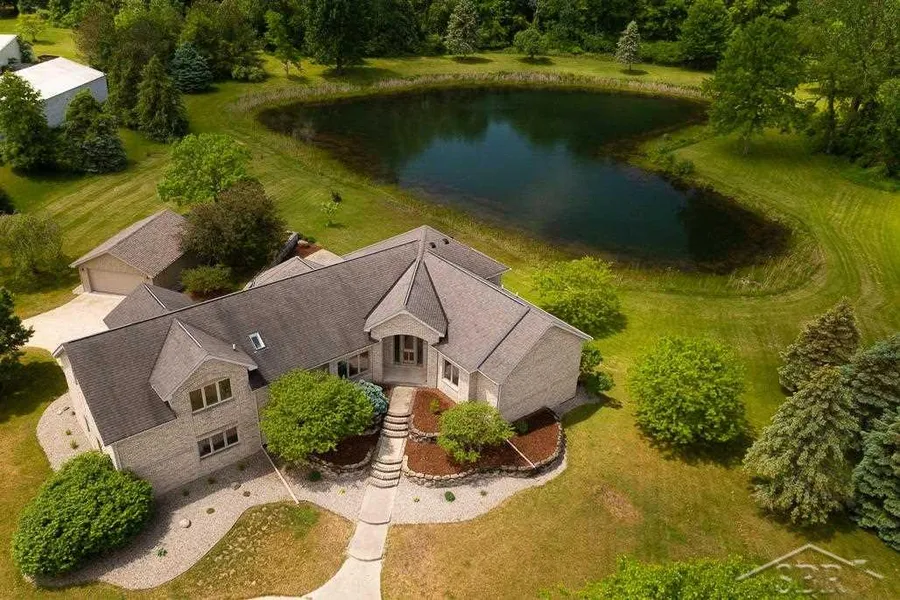 Amazing views from every room in this one of a kind, all brick custom built home with 4 bedrooms, 3.5 baths over 5400 total sq ft of living space on 16 acres! This home features an oversized kitchen with an extensive center island, stainless appliances, eating area, formal dining area and flows into the great room with fireplace. Amenities include 1st floor primary bedroom suite, 1st floor laundry, an in-law suite with a kitchen, full bath and living area. Also included a spacious family room, the office/den is amazing and a year round sunroom. Outside you'll enjoy a large terrace, patio, heart shaped pond, an extra 2 car garage and 16 acres of a park like setting and wooded area. Designed to entertain or just relax and enjoy the nature around you! Located in Swan Creek Twp, across the street from the Shiawassee Refuge and just minutes from Saginaw.