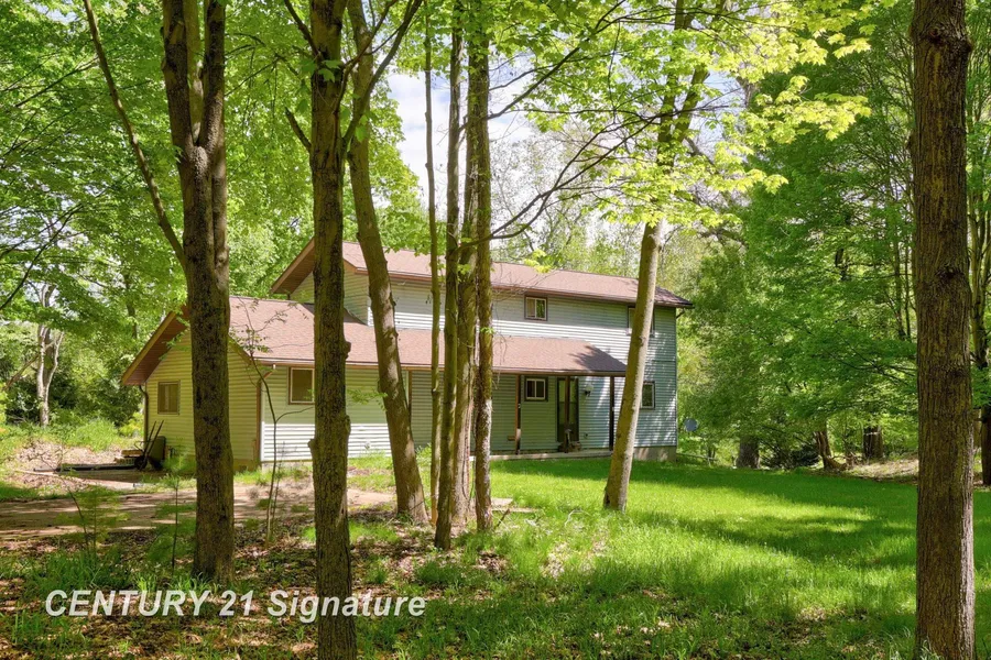Five tree covered acres in Swan Creek Twp, includes a five bedroom, two bath home with walk out basement. This Wausau built home is two story; fireplace on lower level, a full bath on first & second floors. Large living room & dining area overlook open staircase to upstairs & to family room in basement. Access deck from the dining area. Bedrooms located on first & second floors. The large eat in kitchen can accommodate more than one cook in the family. Two car detached garage and generous amount of parking space. Allow your imagination to take flight & make this your dream home.