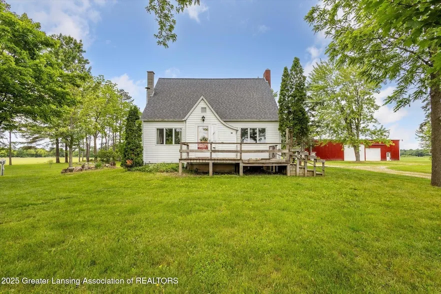 OFFER Deadline Saturday 6/21 by 5:00 pm. Welcome to 16544 S Chapin Rd, Elsie, MI!This lovingly maintained Mid-Century Storybook home offers 3 bedrooms, 1.5 baths, and sits on a beautiful 3-acre parcel surrounded by mature trees and a countryside view. From its whimsical architectural lines to its vintage details, this home is full of character and warmth. The primary bedroom and laundry are on the first floor along with the dining room, living room and kitchen. Two bedrooms are upstairs and practical, custom built in storage is throughout the home. Outdoors, you'll find plenty of space to play, garden, or relax in the shade. There are several impressive outbuildings, including a massive 70' x 40' pole barn part workshop (cemented and insulated) and part storage. Additional structures include a 36' x 15' shed, a 22' x 16' shed, and a 75' x 18' storage building, giving you room for all your hobbies, tools, or equipment. Updates include a new roof in 2017 and newer septic system and drain field. Located on a paved road just mile from M-57, with quick access to Owosso, St. Johns, and St. Louis, all less than 30 minutes away with Saginaw being 40 min. Schedule your showing today! *Lot lines are estimated, some rooms have been virtually staged.