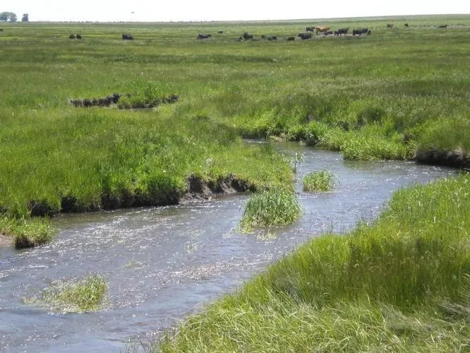 There are numerous improvements including a new center pivot, two homes, barns, corrals, and a steel shop in addition to good roads and fences throughout the property. 123 acres are under center pivot and approximately 800 acres are irrigated and sub-irrigated with the balance is in dry land pasture.