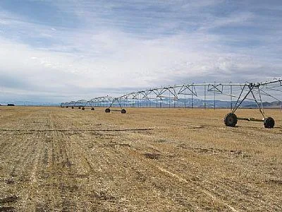 320 irrigated acres including 2 irrigation wells, 5 domestic livestock wells, flood well, sprinkler well, 2 Zimmatic sprinklers, equipment and injector pumps relating to those sprinklers, bulk fertilizer tank, pivot tanks for bulk fertilizer, 4 grain bins, irrigation pipes. Plus 2160 SF, 2005 HUD modular with 3 bedrooms and 2 baths.