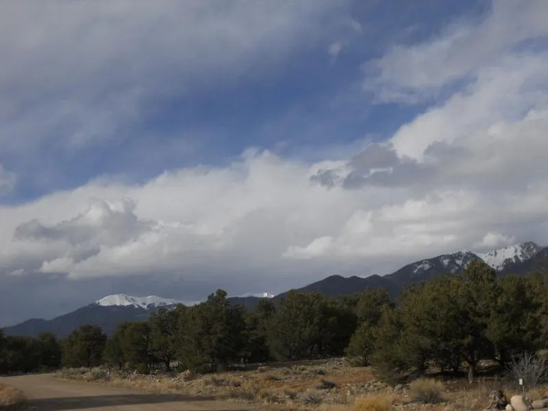 Beautiful views from this flat lot in the peaceful Baca Grande Chalet II subdivision. Location is up toward the mountains with many pinon trees and several nice building sites. This one-acre parcel is actually two half-acre lots combined. Tap fees paid.