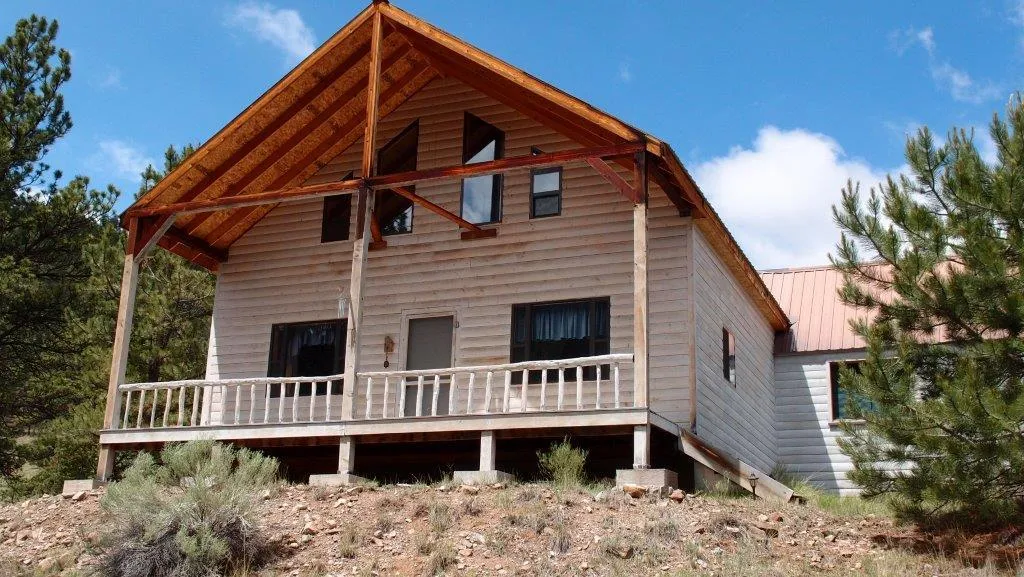PRICE REDUCED! Great potential in this 1700 SF off-grid cabin; master on ground floor with full bath, living room, and eat-in kitchen. There is a second bedroom on the upper level along with a loft for extra sleeping quarters. In addition, within the cabin is a separate small living quarters for guest, which is fully contained and includes the third bedroom in the home. The property is completely powered by propane and generator. The land is slightly sloped with a nice covered deck on the front of the home facing a large valley with mountains beyond. North Carnero Creek runs through the property, and there are tons of aspen, ponderosa and pine trees plus a full stand of grass. High mountain views in every direction. A small storage shed sits beside the cabin. The well, by use of a generator, pumps water into a holding tank at the cabin. The cabin needs finish work but is currently liveable. There is an abundance of wildlife including elk, deer, and other small game species. The 800 lb, 8 pt elk that is shown below, was killed on this property! Great access, but will need a 4x4 for winter access. This property borders National Forest on 3 sides and is 9 miles west of La Garita. Lots of privacy!
