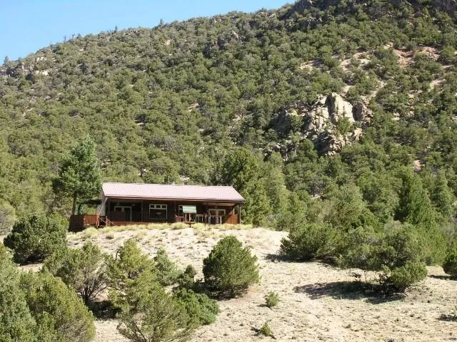 Custom built 2056 SF, 2 bedroom, 2 bath home on 115 acres bordering National Forest and BLM. End of the road privacy with no public access. Property includes a guest cabin and bunkhouse, fully wired shop, barn, and sheds. Large capacity solar system provides ample power and convenience to all facilities and is supported by a wired-in back-up generator. Tall pines, rock outcroppings, meadows, and a seasonal stream and spring provide a haven for elk, deer, and other wildlife.