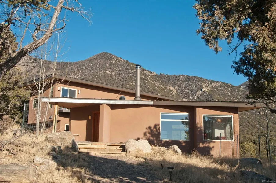 One of Crestone's finest home's for sale designed by Bodhgaia Architecture and built by Teahen Construction in 2012. This custom built masterpiece features million dollar views from every room! The architecture is contemporary with exquisite details including diamond plaster walls, white oak floors with radiant heat, built-in entertainment center and desk, coffered ceiling, and a cultured stone fireplace. Kitchen has custom maple cabinets with GE monogram built-in appliances, commercial oven, granite counters and glass back splash. Window seats in both bedrooms offer amazing views. Teak cabinetry in bathrooms with travertine counter top, wall mounted Toto toilets, glass and stone tiles. Master has a two person soak tub and separate shower. Energy features are solar hot water panels, 500 gallon water storage tank, Lochinvar backup boiler, Heat recovery ventilation system. Extra room upsta...