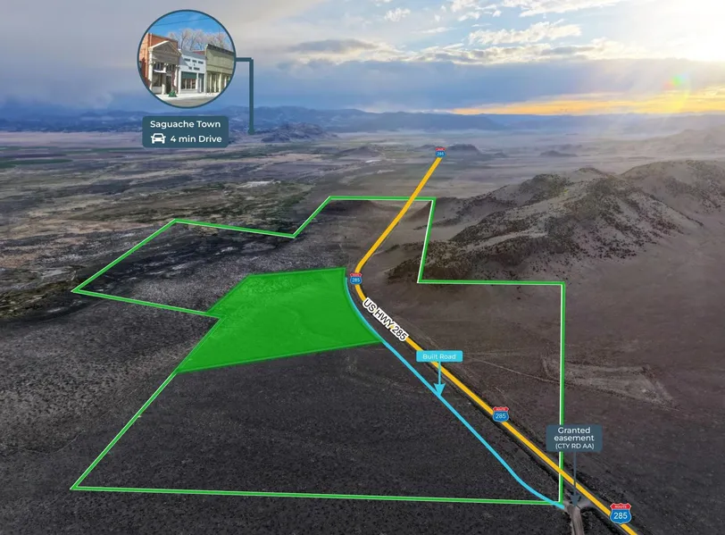 Adjacent to major Interstate Highway 285. Heading east from Saguache via Highway 285. Near County Road AA.