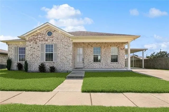 Only 5 years young, this elegant 4-bedroom, 2-bath home in Central Chalmette showcases timeless craftsmanship and modern comfort. Distinguished by stunning crown moulding, beautiful window pediments, and porcelain tile flooring throughout, the open-concept layout is designed with both style and function in mind. The kitchen with custom bar creates a striking centerpiece, while spacious living areas highlight refined architectural details. Outdoors, a covered carport patio and private back porch overlook the fully fenced lot, offering an inviting extension of the living space. Blending upscale finishes with enduring charm, this residence delivers a truly elevated living experience in a desirable location.