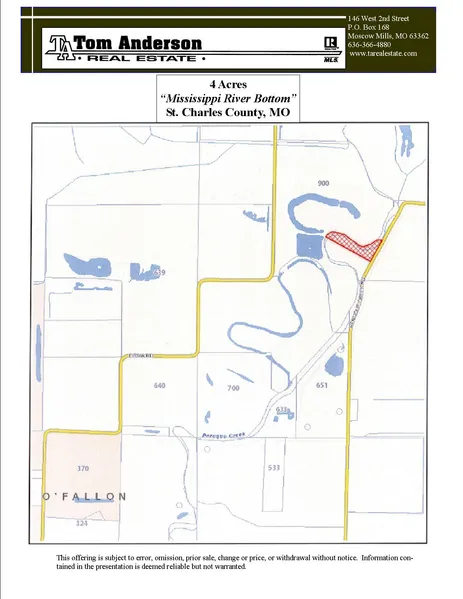 4 Acres "Mississippi River Bottom" St. Charles County, MO. Located in the Mississippi River Bottom near O'Fallon, MO in St. Charles County is 4 acres on Peruque Creek Slough. This property is a unique find right in the heart of numerous, large duck clubs. Right to your Duck Blind or Deer Stand, just minutes from O'Fallon, MO. $42,500