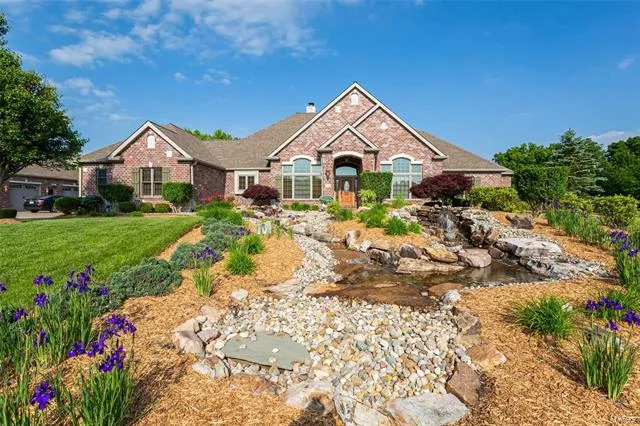 Opportunities like this are rare to come by. This magnificent, 13-yr old custom built estate, on a scenic 2.86 acre private lot is only 15 min from Chesterfield. The long driveway, the expansive lawn, the common ground w/deer & woods. Pull up to the Courtyard of the 8 car garage w/private office, the professional landscaping & waterfalls in the front yard invite you in. Step across the threshold, the architectural details w/exquisite finishes, & modern comforts, interplay w/unique yet functional floor plan throughout inviting spaces. The great room offers stunning alder wood mill work, wall of windows & a fireplace. Magnificent master Suite offers private walk out, & a sitting room. Classic details in the kitchen w/custom cabinetry surrounded by pro-style top brand appliances.W-out/finished LL provides another 3000+ sq living space! Feature list available upon request. Francis Howell; a great value for luxury with total privacy. Words and pictures don't do it justice...come see!