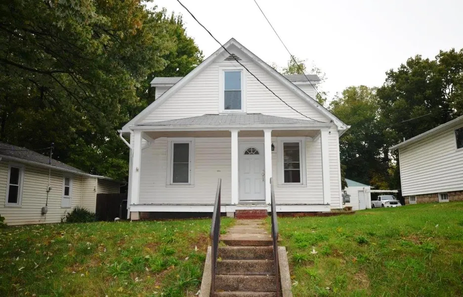 Walk to Main Street in St. Charles! Charming 1.5 Story with walkout basement located on a Quiet street with no through traffic. Large front covered porch! Home backs to trees, Level Yard, Detached Garage with work shop area, plus parking pad for 2 cars off the alley in rear of home. Kitchen and Bath where updated 2012 yet many of the details you love about an older home remain including Hardwood Floors and many original interior doors. Other Updates include cable outlets in all rooms, Electrical Service, Vinyl siding, Windows, kitchen back splash and some white 6 panel interior doors. Carpeting in two upstairs bedrooms and in main floor den was installed March 2012. Tile flooring in Kitchen-Dining space that makes it more of an inviting and open 19 X 11 area with lots of natural light and includes a generous pantry. Basement features a laundry area and plenty of (stand up straight) room for storage.