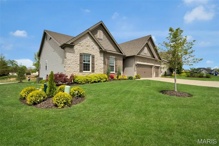 Life’s better when your home gives you room to gather, celebrate & relax—this 4,600 sqft ranch does it all. Just move in & enjoy everything it offers! Spend weekends your way: browse the LSL Farmers & Artists Market, stroll downtown Cottleville, wander Quail Ridge Park, relax at Veterans Honor Park, enjoy the Streets of St. Charles, or soak in Historic Main Street in Old Town St. Charles. This 7-year-young former display ranch has 2,500 sqft on the main level plus 2,100 sqft in the finished lower level. A soaring foyer opens to a Great Room with 10’ ceilings, 8’ doors & a floor-to-ceiling stone fireplace. The open plan flows to formal dining & a gourmet kitchen with massive island, gas range, stainless appliances, marble counters, butler’s pantry, walk-in pantry & main floor laundry. Step out from the breakfast room to a maintenance-free deck—perfect for entertaining or relaxing. The primary suite is a true retreat with spa bath featuring stand-alone tub, oversized shower, dual vanities & his & her walk-in closets. 2 bedrooms share a JnJ bath, an office & powder room complete the main level. Downstairs, the finished lower level is an entertainer’s dream with granite-topped wet bar, rec room, full bath & guest bedroom—while leaving plenty of storage. Extras include a drop zone off the oversized 3-car garage, irrigation system & access to the community pool & clubhouse. Convenient to 364 with quick access to 64/40 & 70.