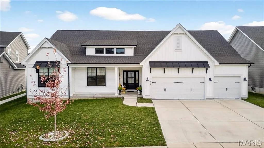 Welcome to this beautifully designed 3-bedroom, 2.5-bath with 3 car garage ranch located in the highly sought-after Villages at Sandfort Farm community. The open floor plan offers convenient access to the kitchen and dining area. The exterior showcases excellent curb appeal with stone and horizontal/board and batten white siding, Craftsman-style details and carriage-style garage doors. Inside, you’ll find 9-foot ceilings on the main level, Engineered wood flooring, and a spacious great room with a wall of windows, a gas fireplace with stone surround. The open-concept kitchen features a large center island with seating, Granite countertops, gas cooktop with microwave hood, crown moulding cabinets, pantry. The primary suite offers a large room with 2 big windows, and a walk-in closet with built-in organizers and attached restroom with dual vanity. Additional 2 bedrooms come with walk-in c...
