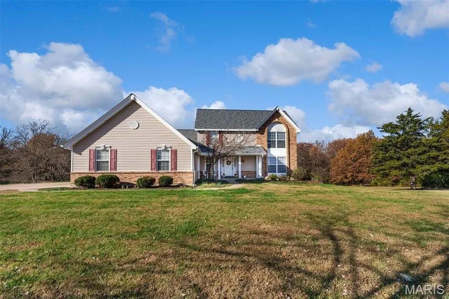 Experience refined country living at its finest on this exceptional 3-acre, tree-lined estate. Perfectly positioned for privacy and tranquility, the home invites you to unwind on the expansive deck, where breathtaking views of nature and wildlife create a serene, resort-like backdrop. Step inside to discover a distinctive floor plan designed for both elegance and comfort. The upper level is dedicated to a luxurious primary suite featuring a spacious walk-in closet and a beautifully updated en-suite bath with a seated shower, corner soaking tub, new flooring, and dual vanities. Two additional, generously sized bedrooms with impressive closet space complete this level. A dramatic spindle staircase opens to the grand great room an impressive space with soaring vaulted ceilings, a striking five-window bay, and a stately fireplace that sets the tone for sophisticated entertaining. The main floor offers exceptional functionality with a convenient laundry room off the garage, along with formal living and dining spaces enhanced by expansive windows and abundant natural light ideal for an elegant home office or quiet lounge. The gourmet kitchen and breakfast room feature rich hardwood flooring, stainless steel appliances, a downdraft cooktop, pantry, and upgraded cabinet drawer slides perfect for the culinary enthusiast who appreciates style and performance. The lower level extends the luxury with a private 4th bedroom boasting wall-to-wall closets and double windows, a full bath, a spacious family room, and a walkout to a charming patio ideal for guests or multi-generational living. Additional enhancements include a new roof and gutters (July 2025)