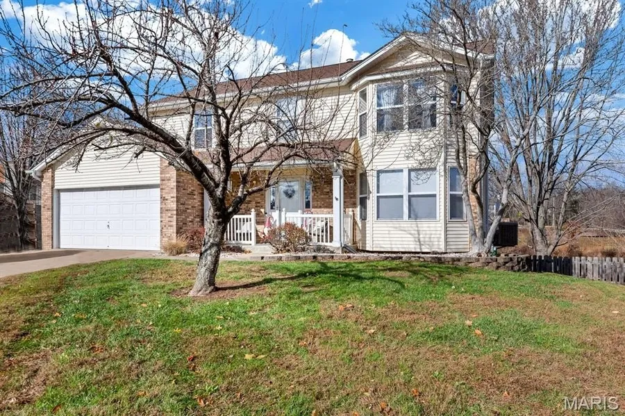 Situated at the end of a cul-de-sac on a large, fully fenced lot adjacent to a walking trail, you will find this beautiful 4 bedroom and 4 bath (two full and two half) two-story home with finished lower level with walkout. The main floor has plenty of room to entertain! The family room with wood burning fireplace opens to the kitchen and expansive deck. The dining room and formal living room provide additional space to accommodate those larger gatherings! The main floor has so much natural light from the bay windows in the family room and living room! The kitchen features granite countertops and custom plank ceiling with ample pantry space. Need more space to entertain? Check out the lower level with wet bar, newer carpet and custom built-ins! Upstairs you will find an updated primary bathroom with soaker tub, walk-in closet and another bay window. Three additional spacious bedrooms and full bath round out the upper level. Newer HVAC, hot water heater and roof provide peace of mind for the next owner!