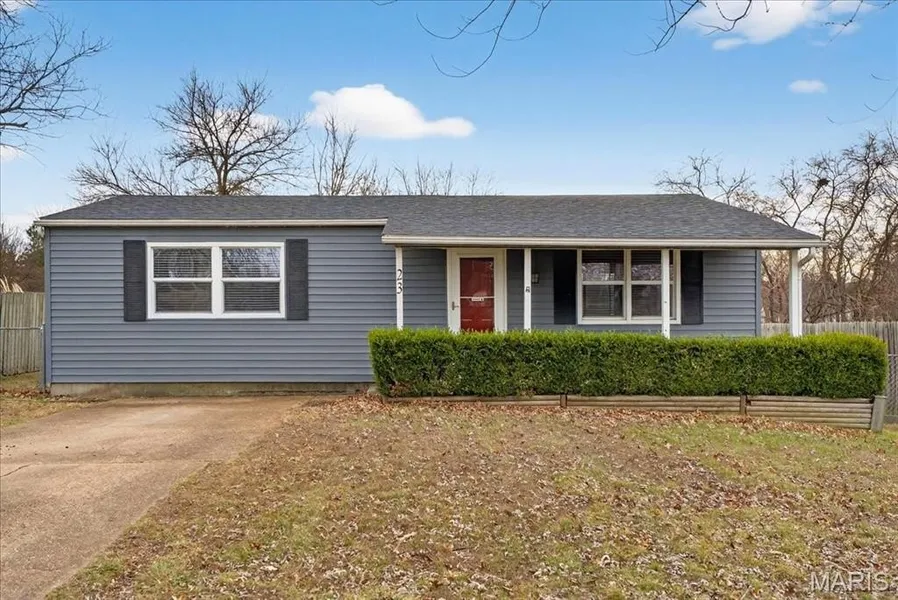 MOVE-IN READY & FULL OF UPDATES! This charming 3-bedroom, 1.5-bath home features a newer roof and vinyl siding for peace of mind. Step inside to a cozy vaulted family room, kitchen, and dining area filled with natural light from a large front window—perfect for everyday living or entertaining. The spacious kitchen offers abundant counter space, wood-grain laminate flooring, and a stylish tile backsplash, while the adjacent dining room includes a ceiling fan and sliding door that leads to the fully fenced backyard with a 12x10 utility shed for extra storage (which also has newer siding 1-26) The primary bedroom features its own sliding glass door—ideal for future patio access or even a hot tub retreat. The unfinished basement provides ample storage and endless potential for finishing, plus a convenient laundry area. Located just off Hwy K, you’ll enjoy quick access to Hwy 40/64, I-70, and the Page/364 Extension making commuting and daily errands a breeze.