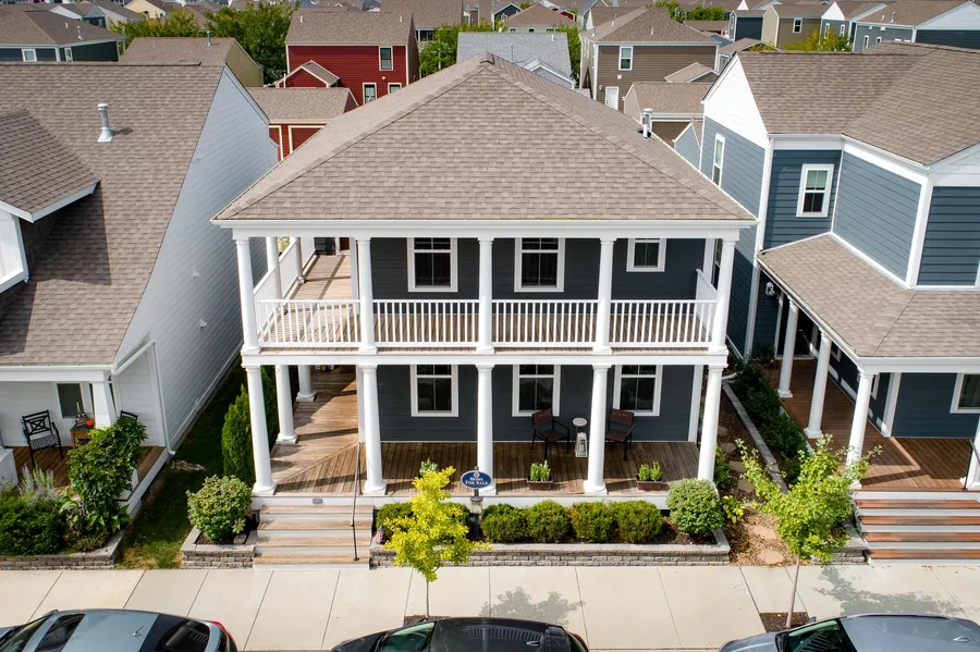 This Popular Dual Balcony Elevation offers 3BR/3BA, 1992 sq.ft., so much charm & conveniently located in the Beach District! Includes: Foyer Entry, 9 Ceilings, Ceiling Fans, Wood Flooring through out the Main Floor, Laundry room w/utility sink & separate entrance to the backyard! The Kitchen features staggered cabinets, work station, center island/bar, stainless appliances, coffee station & walk in pantry. The Breakfast room leads to the 20x10 Patio area, w/additional fire pit area, privacy fence and plenty of room left to relax/play. The Luxury Owners Suite includes: soaker tub, sep. shower, dual sinks & walk in closet. The landscaped exterior, loft with door to upper balcony and Dual HVAC system, just complete this home w/plenty of storage remaining. New Town offers resort style living with amenities within walking distance. Restaurants, swimming pools, clubhouse, beach volleyball cour...