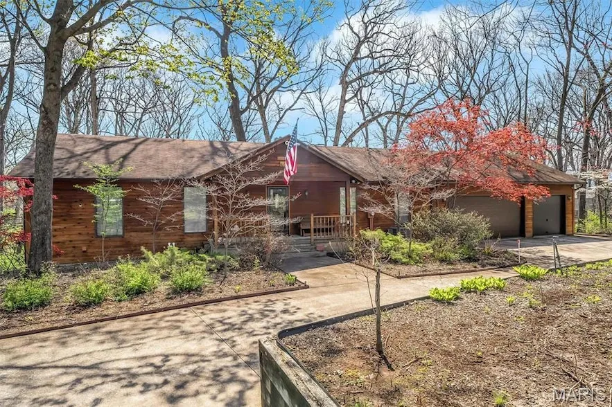 NEW ROOF, House and shed 7/21/25! Stunning custom-built, energy efficient,2 bd, 2.5 ba home, 3-car attached garage nestled in private Fox Wood Estates Subdivision sitting on 3+ acres. Privacy at its finest, circular driveway, access to shared 10 acre lake, great fishing, 10' wide asphalt from shed to lake. Welcoming entry brings you to the living room area w/brick fireplace, built-in bookshelves, opens to dining area w/huge windows w/tons of natural light. The primary bd has access to a deck, private bath, shower, & large jacuzzi tub. The Kitchen has a large pantry for organizing all your culinary supplies. Custom cabinetry, ceramic backsplash, built-in Sub Zero refrigerator, double oven & gas cooktop. The LL features, large den, fireplace, full bar, walk-out to the nice covered patio that looks out to mature trees, dock & refreshing view of the lake. Great access to freeways, schools, shopping, medical, & entertainment nearby located in unincorporated St. Charles MO allowing low property tax no city property tax.