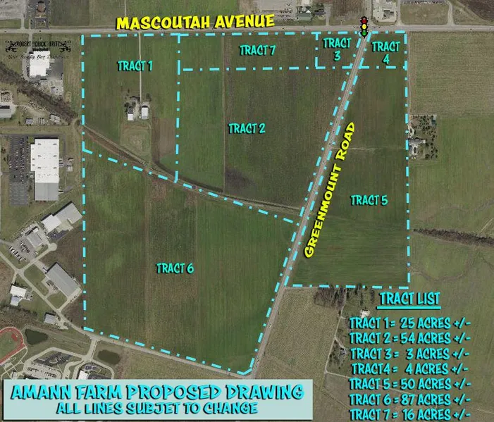 Public real estate and land auction is being held for the Estate of Paul J. & Deborah C. Amann. The property consists of 212.11 acres & 3 bedroom, 4 bath ranch home on a full, though unfinished basement & multiple multi-purpose out buildings. The acreage is in 3 parcels totaling 212.11+/- acres with 206.13+/- tillable acres available. The property is zoned light industrial within the City of Belleville'ss zoning jurisdiction and can be divided. There are approximately 9,409+/- Ft. of road frontage along Mascoutah Avenue and both sides of Greenmount Road. The 1,768+/- SF f home includes a large eat-in kitchen, a family room or office/den with a half bath, a living room & dining room on the main level. The unfinished basement has heated floors, a 3/4 bath, and offers plenty of room to finish for additional living space. The 4 outbuildings include a 60' x 115' machine shed with a dirt floor...